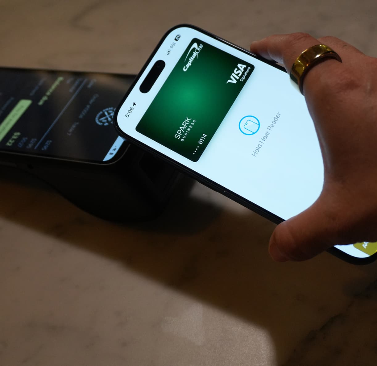 With our handheld payment device for servers, guests can also tap their iPhone right on our payment terminal to accept payment.