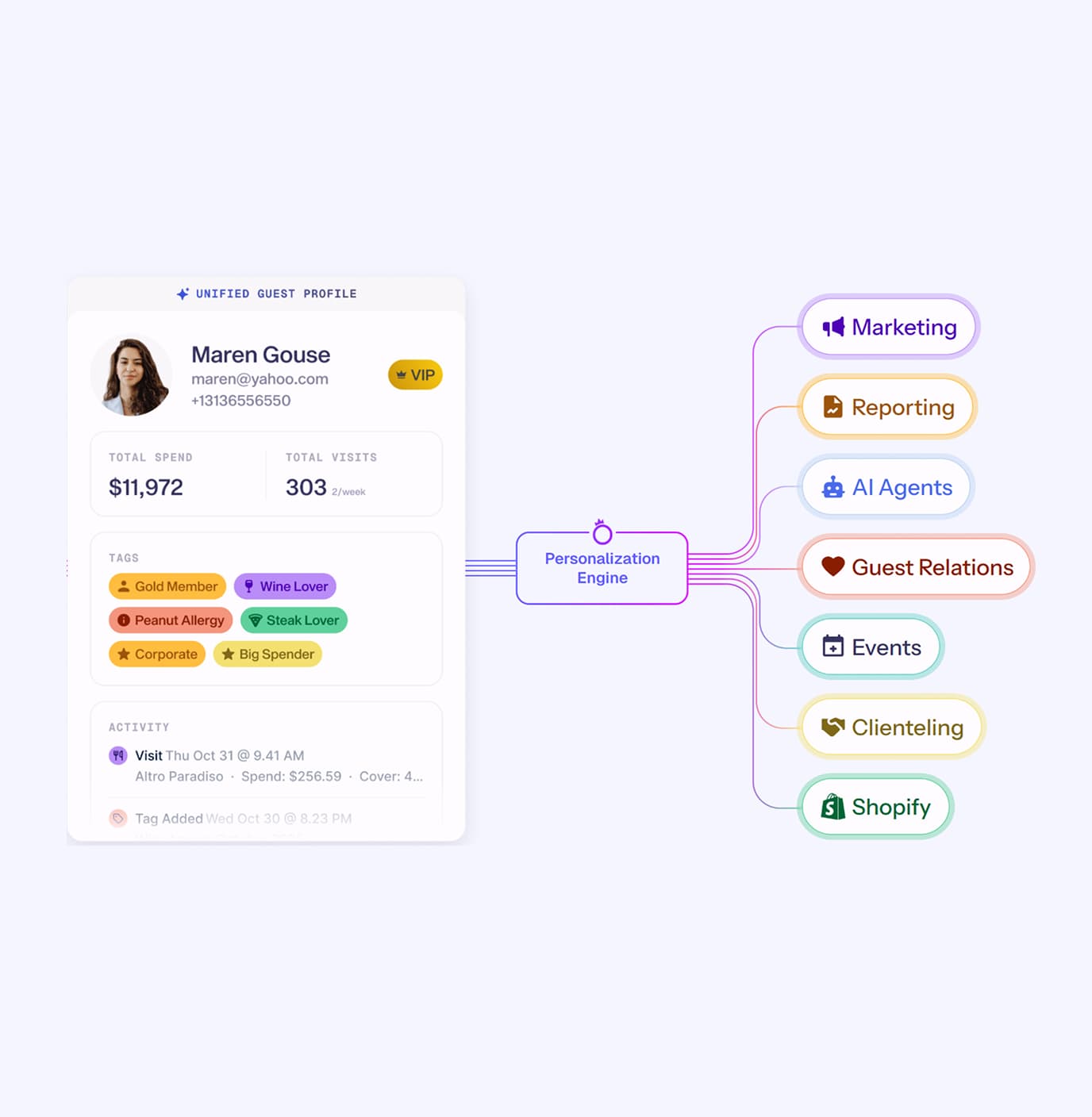 Loyalist connects your Up 'n go payment data with reservations, reviews, and POS systems to build a single guest profile across every touchpoint. Use that profile to trigger automated marketing journeys like thanking high-value guests, re-engaging lapsed regulars, or cross-selling across properties powered by AI that learns your brand voice.